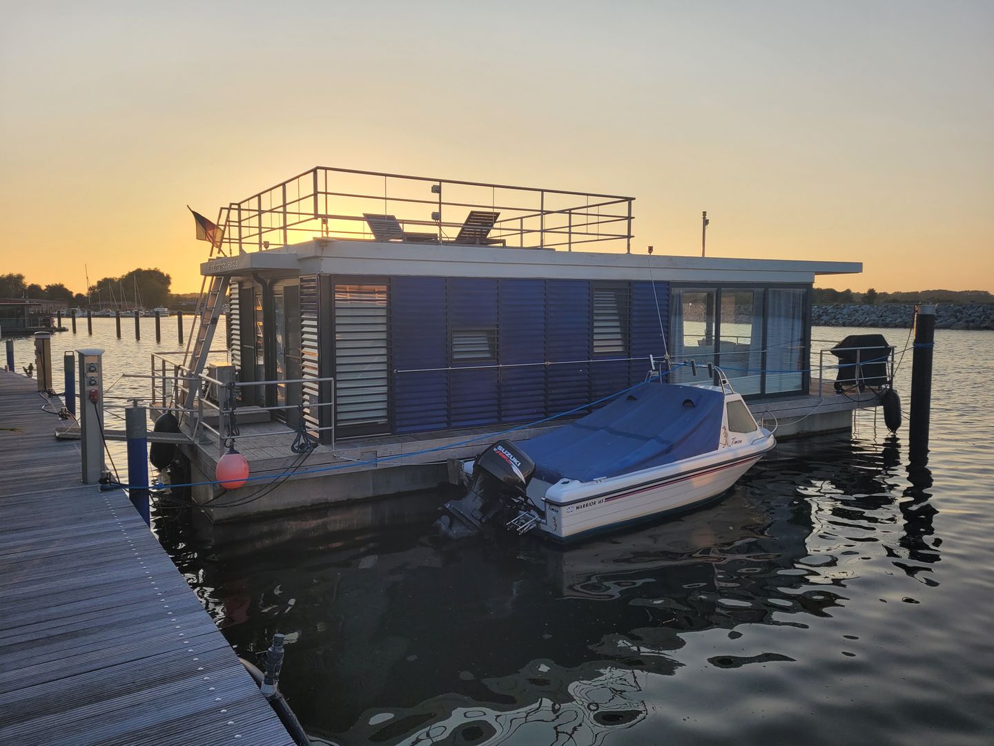 Das festliegende Hausboot "Fjordblik" bietet Ihnen ein einzigartiges Urlaubserlebnis auf dem Wasser – direkt im malerischen Yachthafen von Barth.